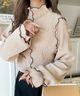 java 正反兩穿寬鬆落肩蓮花紗線編織上衣