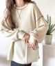 java 正反兩穿寬鬆落肩蓮花紗線編織上衣