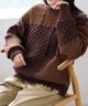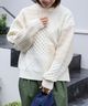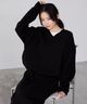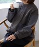 java 正反兩穿寬鬆落肩蓮花紗線編織上衣
