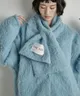 THE YOn 毛絨無領中長版大衣(附圍巾)